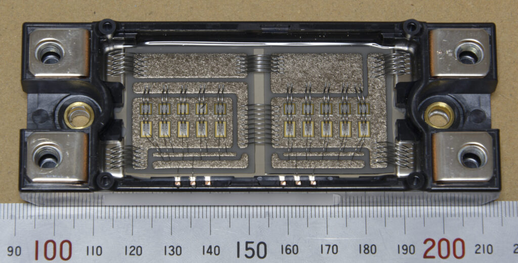 パワー半導体が故障すると、酷いときは半導体が真っ黒に焦げて外側の白いケースが吹き飛ぶくらい激しい爆発を起こして破片と透明なゲル状の封止材を撒き散らすので、掃除が大変でした。