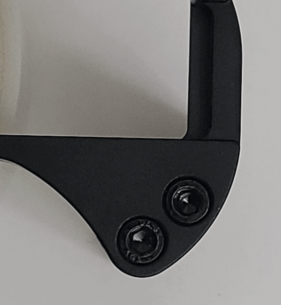 裏側はこんな感じ。グリップの反対側の部品は、握りこむとフレームのエッジが手にめり込むので、当たり方を優しくするためのものです。片側の底面だけ2mm出っ張るので机に置くとちょっと斜めに傾くけどまぁ許容範囲内。