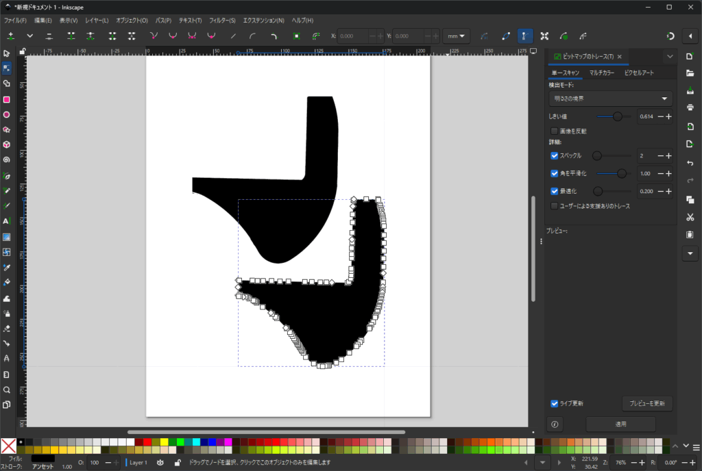 でもって、inkscapeでトレースして