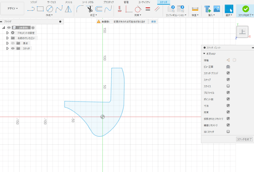 DXFで保存してFusion360で読み込んだ後、どこかの寸法を実測してスケールや角度を調整します