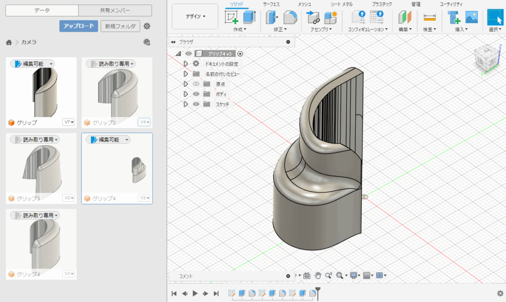 という訳で、売ってなさそうなので3Dプリンタで作ってみました。既に買ってあった前述の外付けグリップをベースに改造していきます。