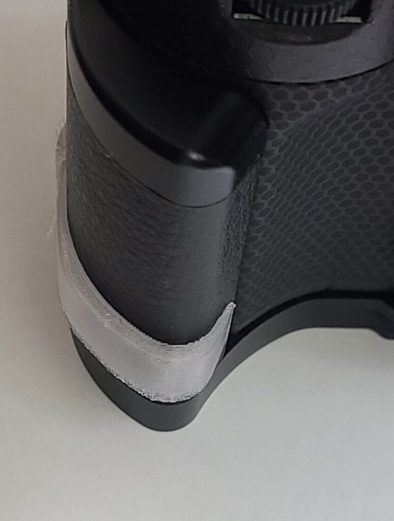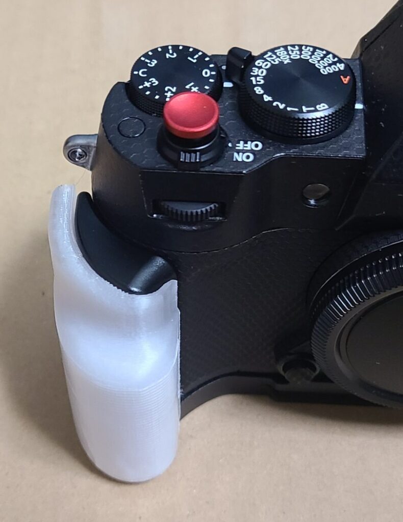 なんか良い感じの形状になってきました。シャッターボタンが垂直なカメラのグリップが大まかにこういう形状になってることが多い理由がなんとなく解って良い勉強になりました(これ以上持ちやすさを求める場合、シャッターボタンをCanonみたいなグリップ先端に斜めに配置する必要がある)。