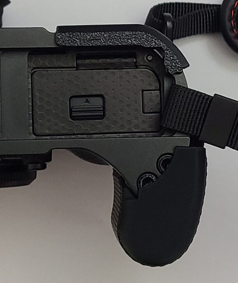 - 持ちやすいようにとグリップをカメラ前面側に伸ばすほど人差し指がシャッターボタンから逃げていく形になるので、ボタンが押しにくくなる