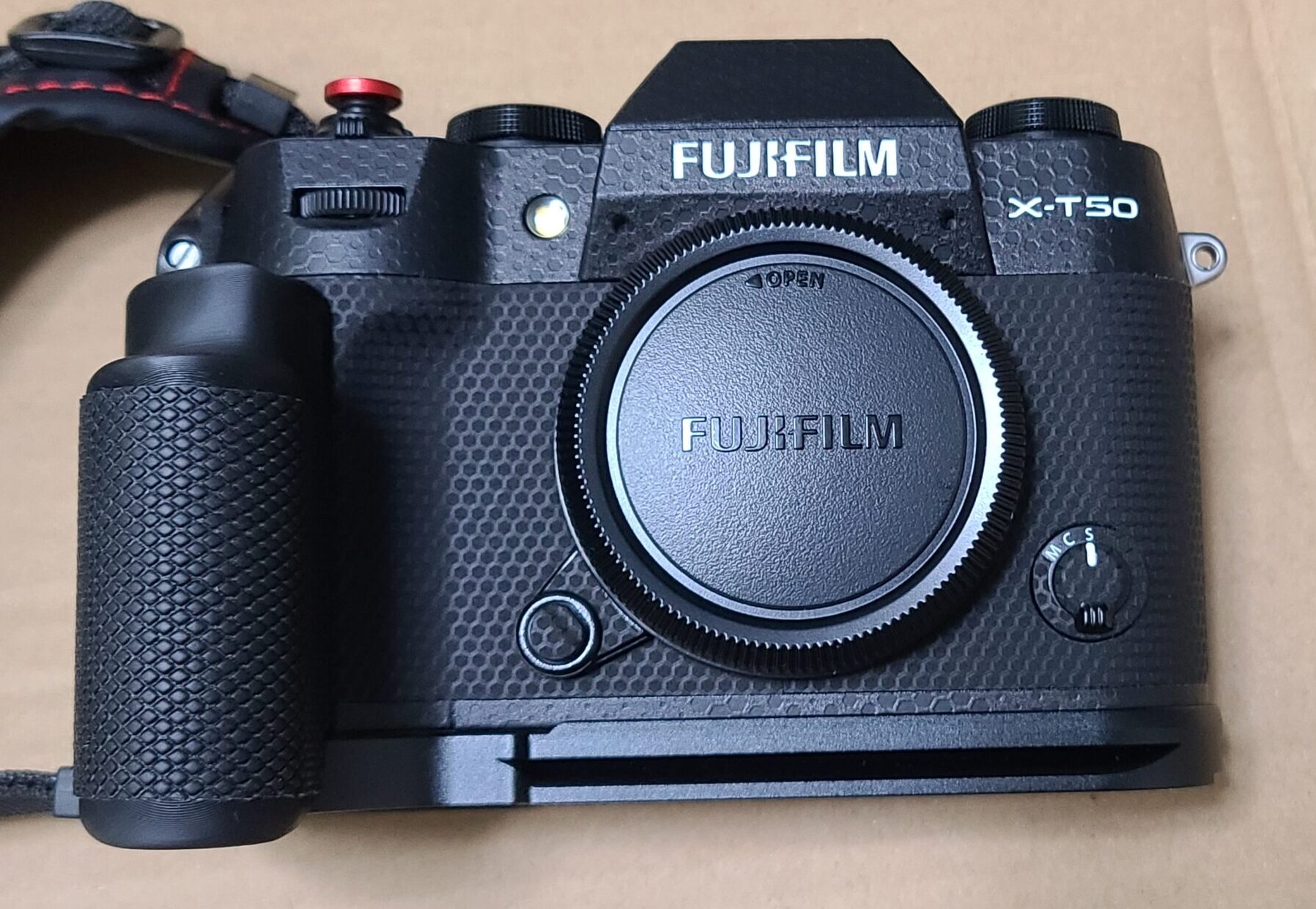 これは外付けのグリップ部分にだけ接着すれば良いように作っているので、パンケーキレンズのように小さいレンズと組み合わせる場合は、グリップごと外せば元の大きさのまま使えるようになっています。